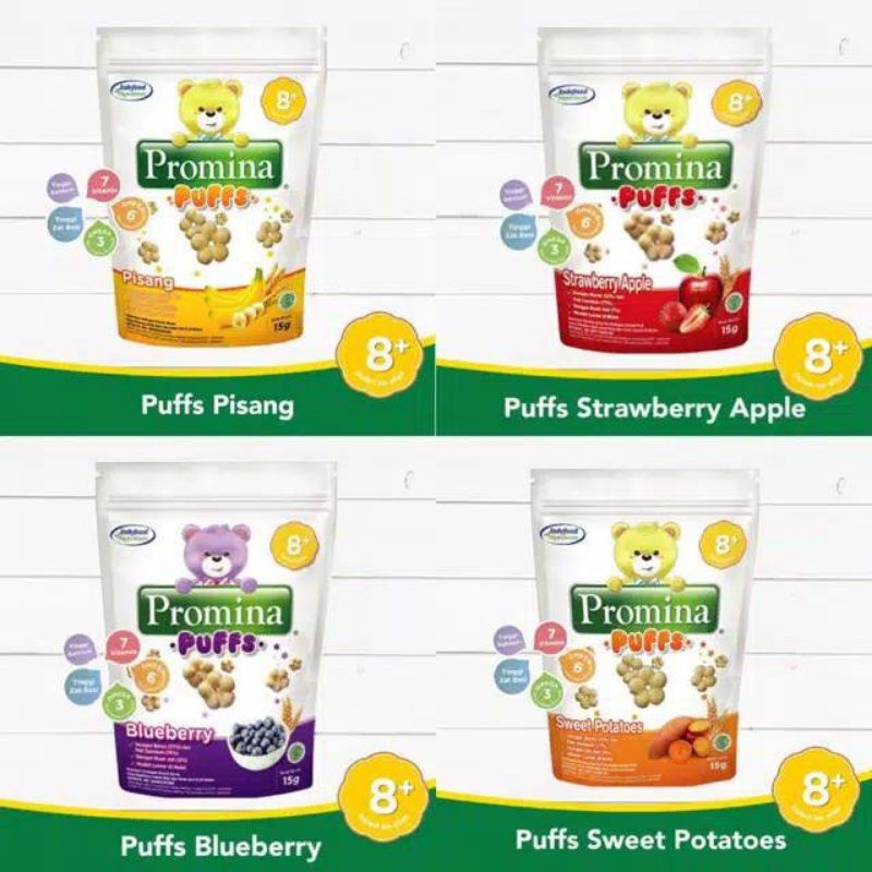 Promina Puff snack untuk bayi usia 8+ dengan variant rasa :