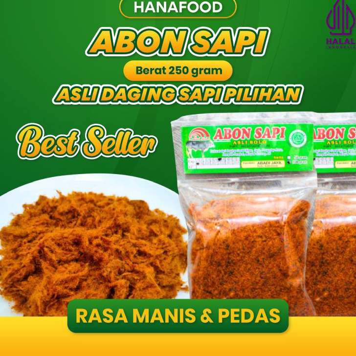 Promo ABON SAPI ASLI SOLO 250gr | 100gr ABON SAPI RASA ORIGINAL DAN RASA PEDAS | A04 SH-06-12-23 ABON SAPI ASLI SOLO Diproduksi oleh ABADI JAYA Solo, Indonesia P-IRT : -21 HALAL 100% LPPOM MUI: Abon Sapi Asli Solo merupakan abon yang terbuat dari bahan daging sapi pilihan dan rempah-rempah tradisional Ttanpa pengawet dan tanpa pewarna diolah secara higienis sehingga menghasilkan rasa yang gurih, nikmat dan lezat. Sangat cocok untuk dijadikan lauk pauk sehari-hari. Terdapat 2 varian rasa : Original (Manis) dan Spicy (Pedas). Silahkan order sesuai dengan varian yang anda pilih. Berat netto : 250gr | 100gr Exp 8 bulan dan Selalu Update Setiap hari - Fast respon jam kerja Senin - Sabtu pukul 8.00 - 16.00, Minggu atau hari libur Off - Mohon mencantumkan warna/gambar/varian pilihan dan cadangannya (jika ada) di kolom pemesanan ya. Jika tidak mencantumkan pilihan, maka akan kami kirimkan sesuai stok yang ready!!! - Pengiriman pada Hari yang sama (malamnya). - Jika barang yang di pesan kosong dan tidak ada respon selama 1x24 jam maka akan di kirim secara random. - Periksa kembali NOMOR HP (TELP) & ALAMAT LENGKAP. Guna mempercepat dan memperlancar pengiriman. - BARANG YANG SUDAH DI BELI TIDAK BISA DI KEMBALIKAN. - Gudang kita ada di Beberapa Alamat Jabodetabek... Jadi pengiriman tidak selalu sesuai alamat toko ini yaaa.. >>>> MEMBELI = SETUJU