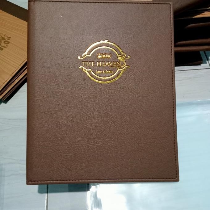buku menu cafe resto hotel dll baha kulit sintetis logo di embos logo bisa, polos,gold,silver,merah ,hijau. bahan bisa request custom logo minimal 5 pcs happy shopping