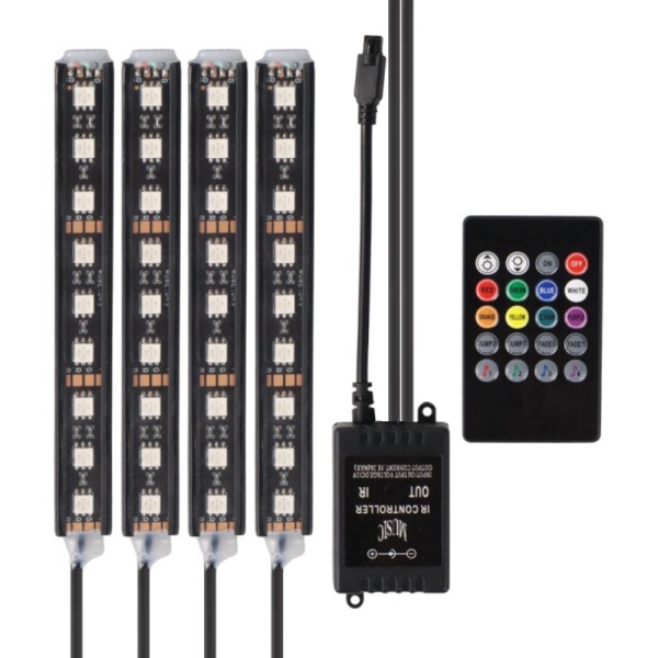 Lampu ini hadir dengan LED RGB dan terdapat sebuah remot kontrol agar Anda dapat mengganti warna LED dari jarak jauh. Bagi Anda penggemar modifikasi mobil maka wajib untuk memperindah interior mobli dengan lampu LED RGB ini.
