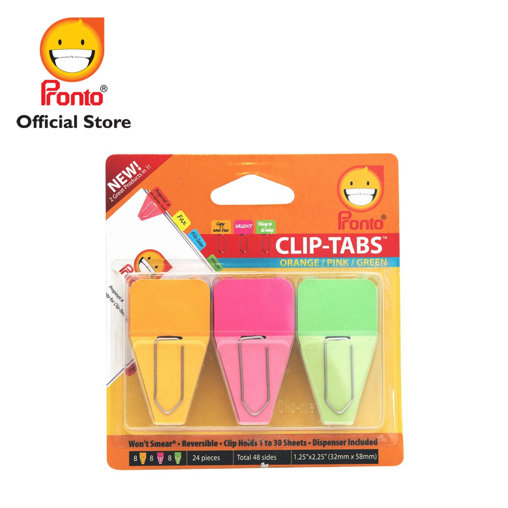 Pronto Sticknotes Clip Tab (Orange, Pink, Hijau)