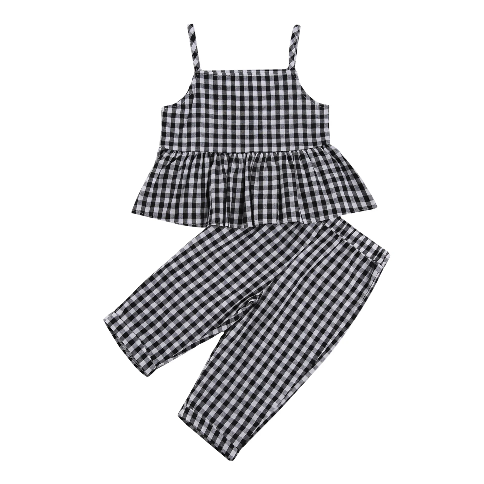Pudcoco От 2 до 7 лет, для маленьких девочек, комплект из 2 предметов, летняя Комплекты одежды в клетку на бретельках без рукавов с оборками и низк...