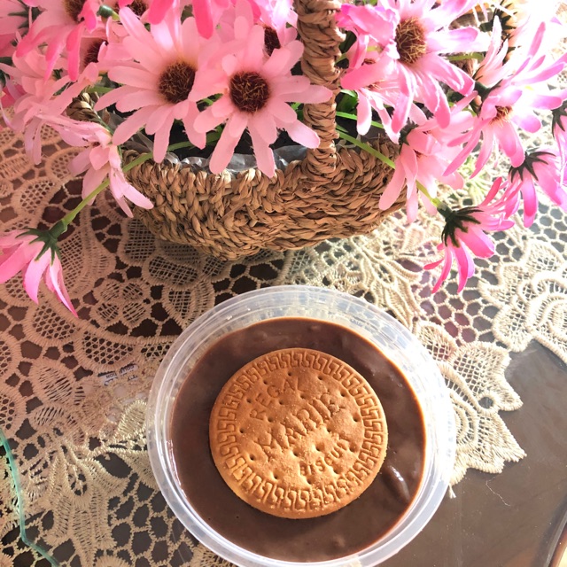 Lapisan atas : coklat + Topping Regal