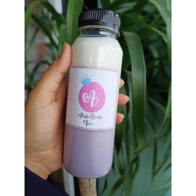 Pudding rasa taro dengan susu