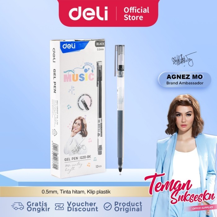 Pulpen Gel Deli Agnes Mo Series CG20 - BK 0.5mm Hitam