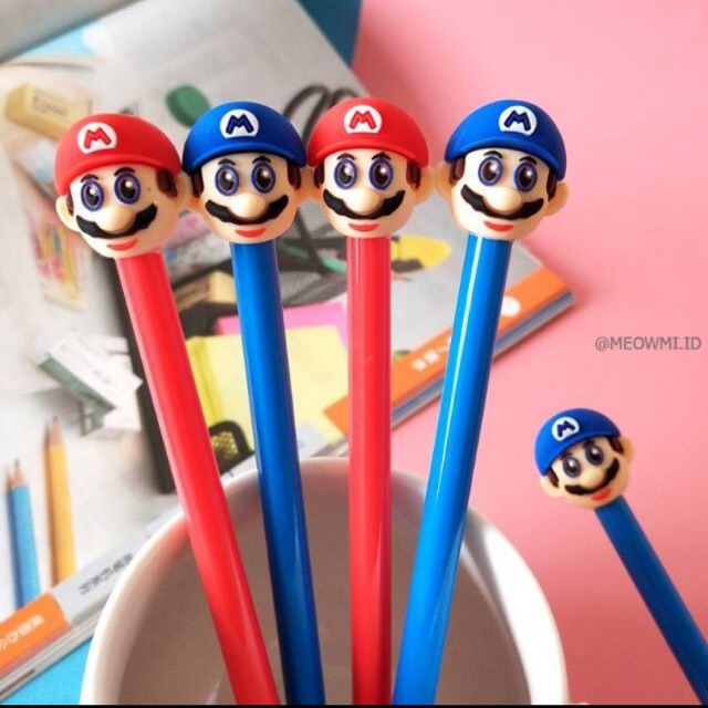 Pulpen Mario ini memiliki desain karakter game supermario yang lucu dan unik sekali. Bikin nolstagia yaa... pena ini juga cocok banget loh buat penggemar game Super Mario. Pena ini memiliki tip pena 0.5mm yang membuat Anda lebih smooth pada saat Anda menulis. Pena ini juga memiliki ukuran panjang pena 18cm yang cocok / muat untuk tempat pensil pada umumnya.
