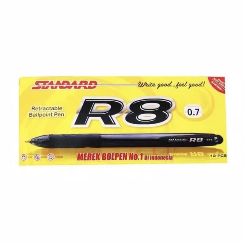 Pulpen Standard yang berbentuk Retractable Ballpoint Pen dengan sistem Auto Clip, dilengkapi dengan Ergonomic Rubber Grip yang berfungsi memberi kenyaman dalam menulis, memiliki tip point 0.7 mm, dengan body PEN berwana hitam crystal. Pulpen jenis ini, cocok digunakan untuk seluruh lapisan usia. Tersedia dalam 3 warna tinta : Hitam