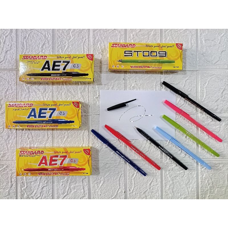 Pulpen merek Standard. Tersedia 2 tipe, AE7 dan ST009. Isi 12pcs/kotak.