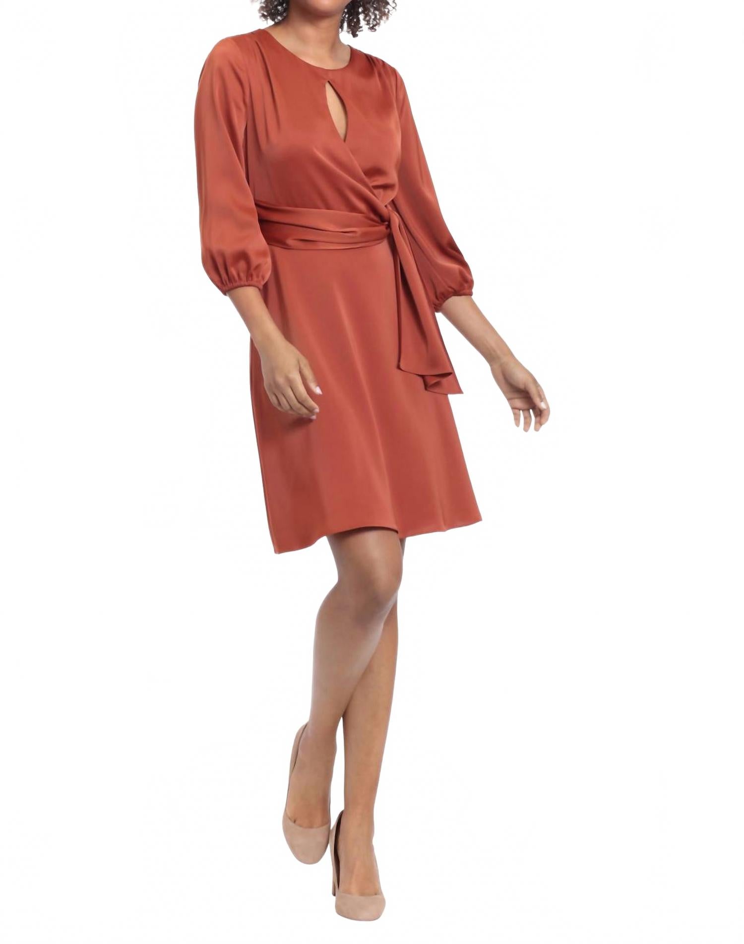 Платье-трапеция с запахом и завязками на боку в блестящем пряном оттенке London Times, Sparkle Spice