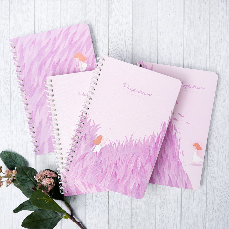 Buku tulis dengan sampul berwarna ungu pastel dan 2 pilihan ukuran ini cocok digunakan untuk kebutuhan sekolah, kuliah atau kerja. Isi kertas dijilid spiral sehingga kertas tidak mudah lepas dan rusak.