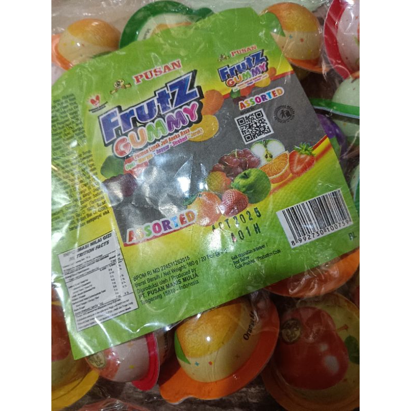 Pusan Frutz Gummy bola Assorted permen lunak dengan aneka rasa buah, di jual per 1 bungkus isi 20, permen lunak, segar, manis dan ekonomis,,, yuk di order