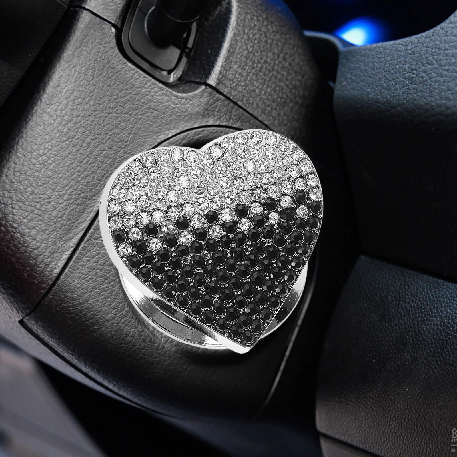 Push Button Start Cover Sticker Heart Design Rhinestone Sparkly Engine Ignition Cap Scratch Protection Diy Car Interior Decor