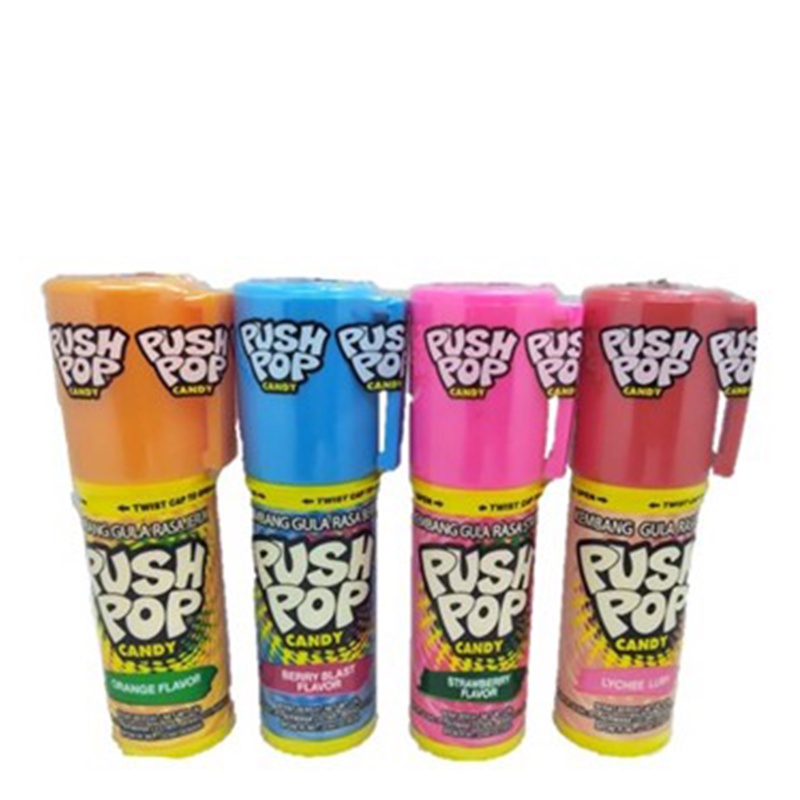 Push Pop Candy 14gr merupakan permen yang memberikan sensasi manis dan segar pada mulut serta dikemas dalam kemasan yang unik. Push Pop Candy sangat cocok dinikmati bersama dengan teman dan keluarga Anda.