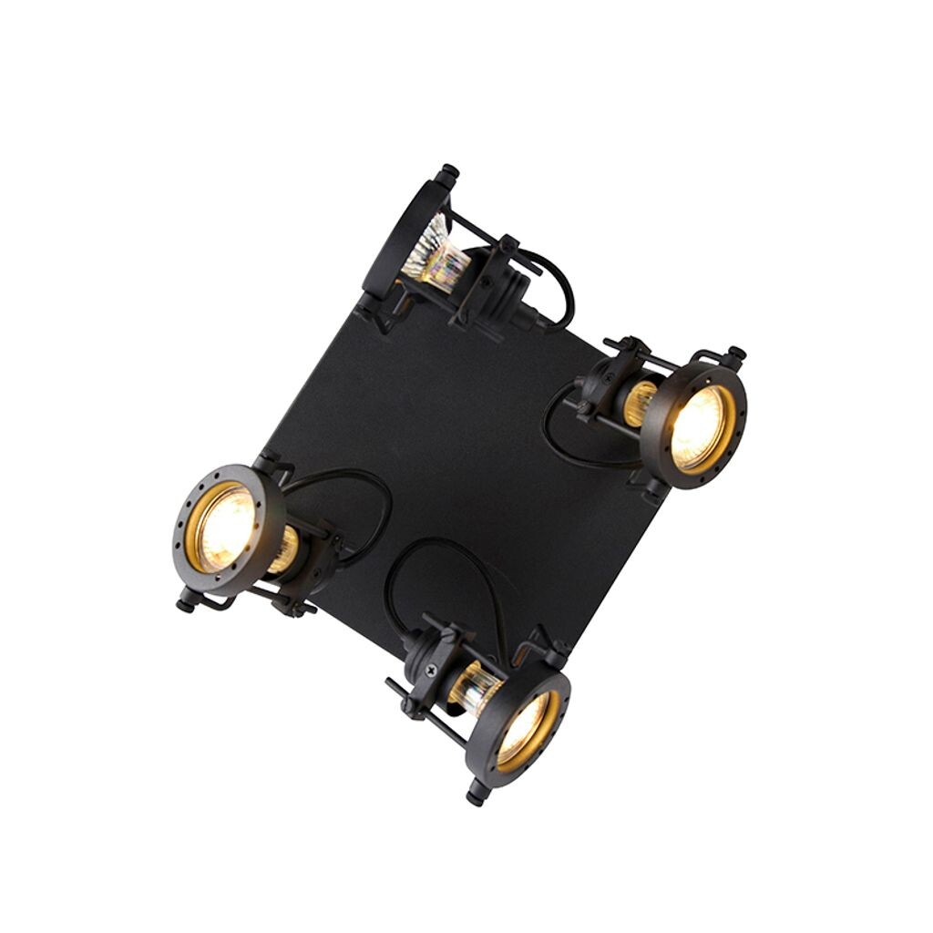 QAZQA - Промышленность I Винтаж I Индустриальный прожектор I Прожектор I Потолочный прожектор I Потолочный прожектор I Прожектор I Лампа I Свет Черный 4-прожекторный светильник с точечным пламенем - Suplux I Гостиная I Спальня - Сталь Qua