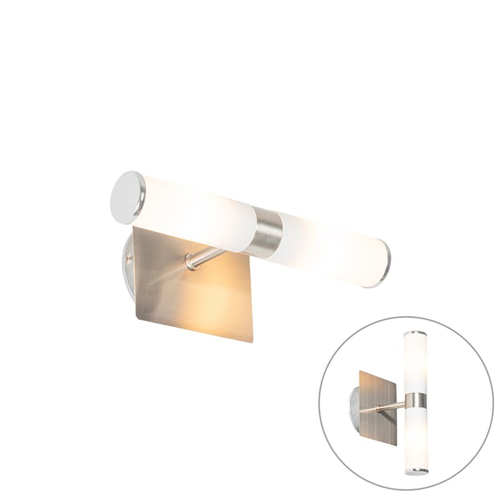 QAZQA - Современная ванная комната I Настенный светильник для ванной комнаты сталь I серебро I матовый никель IP44 2 лампы - Ванна I Up & Down - продолговатая сталь - подходит для светодиодов G9