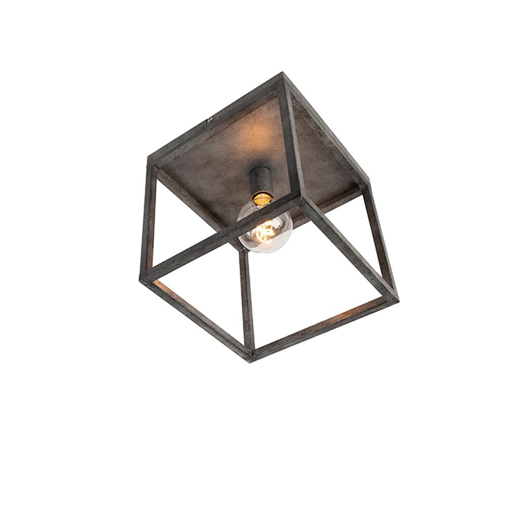 QAZQA - Современный потолочный светильник I Потолочный светильник I Лампа I освещает старинное серебро - Большая клетка I Гостиная I Спальня - Стальной куб - Светодиод подходит E27, серый