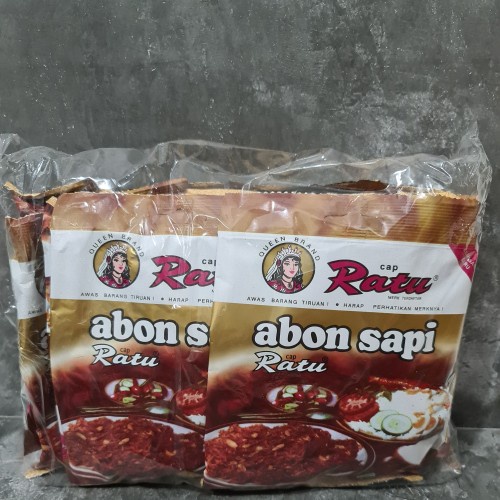 Abon Sapi Cap Ratu terbuat dari daging sapi murni, dan bumbu yang terpilih. Sangat dianjurkan untuk lauk-pauk dan lezat sekali.