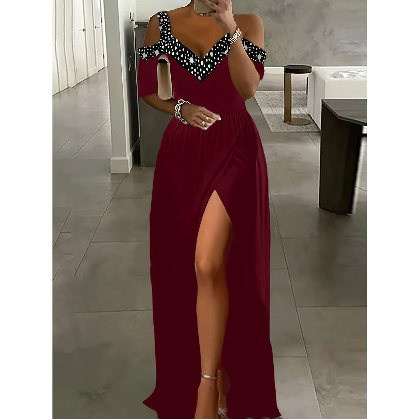 QICED Весна и лето Женское платье с открытыми плечами и халтером Модное платье с разрезом для женщин XXXXXL