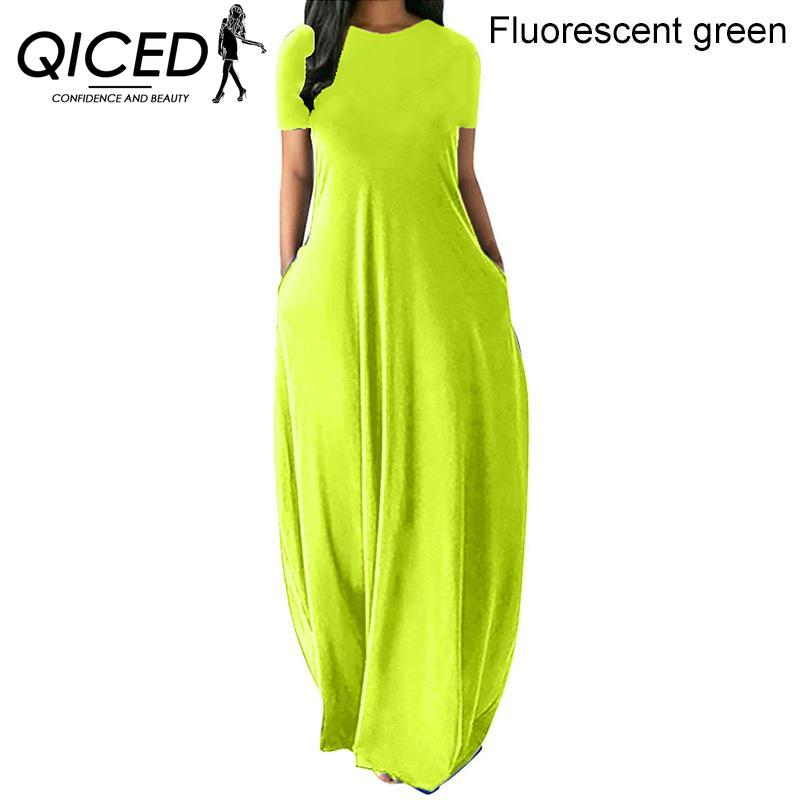 QICED Женское повседневное свободное длинное платье с круглым вырезом и коротким рукавом, летнее пляжное платье, элегантное вечернее платье XXXXXL зелёный