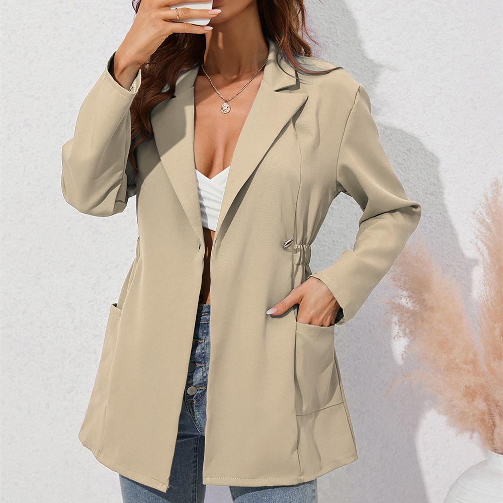 QICED женские винтажные повседневные однотонные куртки и пальто с воротником-поло на осень-зиму с длинным рукавом и принтом XXL хаки