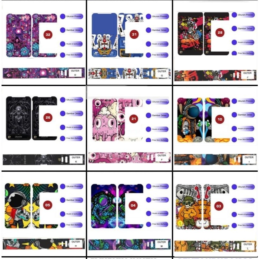 Dengan kualitas bahan stiker Vinyl dengan pewarnaan HD Printing dilapis Laminasi doff sehingga kualitas menjadi lebih baik, tidak mudah luntur, mudah saat di aplikasikan, dengan daya rekat yang kuat tapi tidak menyisakan lem saat di lepas, dari hasil gambar yang jelas menjadikan tampilan dekorasi device kalian lebih variatif