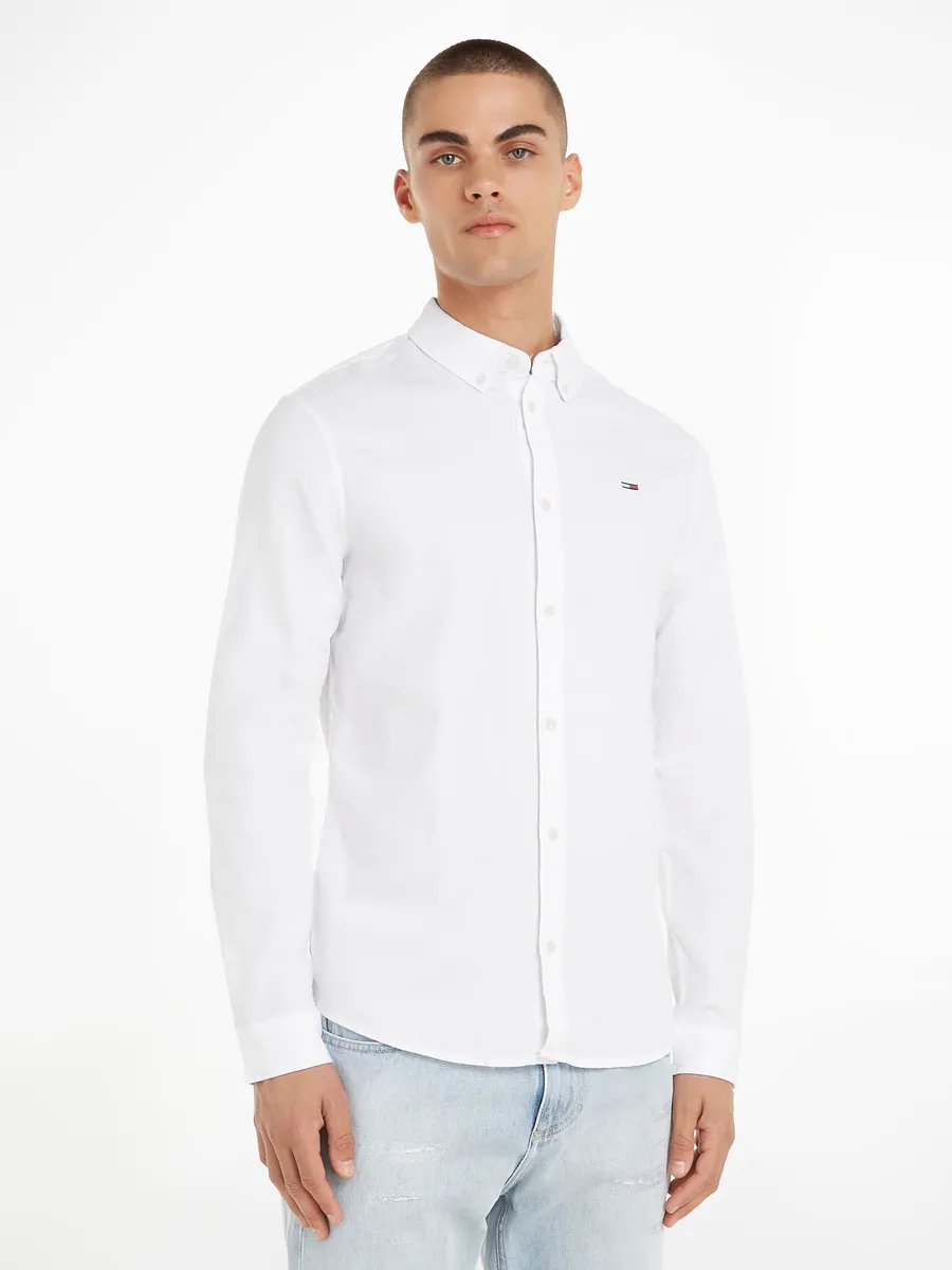 Рубашка Tommy Jeans с длинными рукавами "TJM Slim Stretch Oxford Shirt", с этикеткой-флажком на груди, белый