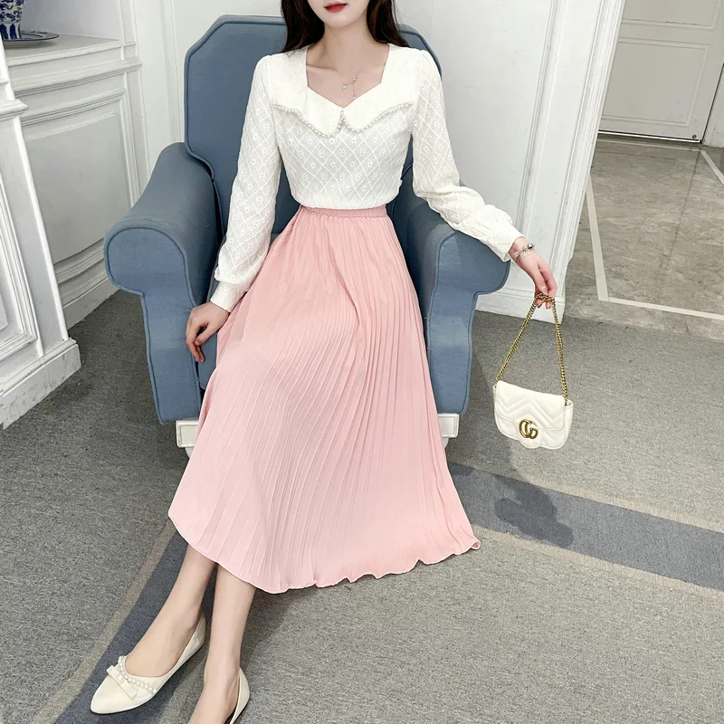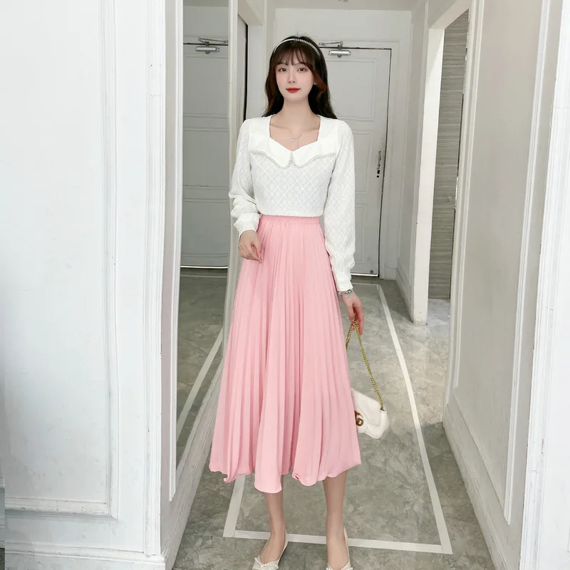 Qooth Женская Весенняя эластичная талия средней длины 9 цветов s плиссированная трапециевидная летняя однотонная шикарная большая фотоюбка QT2027