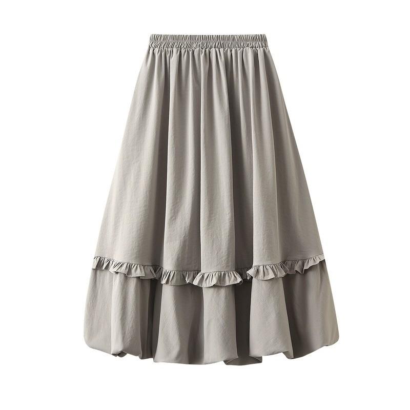 Qooth Эластичная талия Рюши по подолу Сборки Юбка миди для женщин Осень Приталенная Юбка-блумер QT2738 One Size хаки