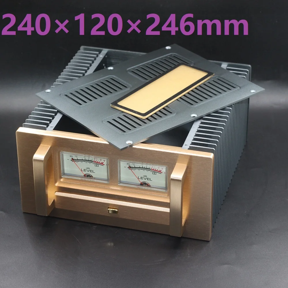 Quality Class A W240 H120 D246 DIY Gold Rear Case Dual VU Meters Power Amplifier Chassis Preamp Hi End Shell Audio Decoder Box