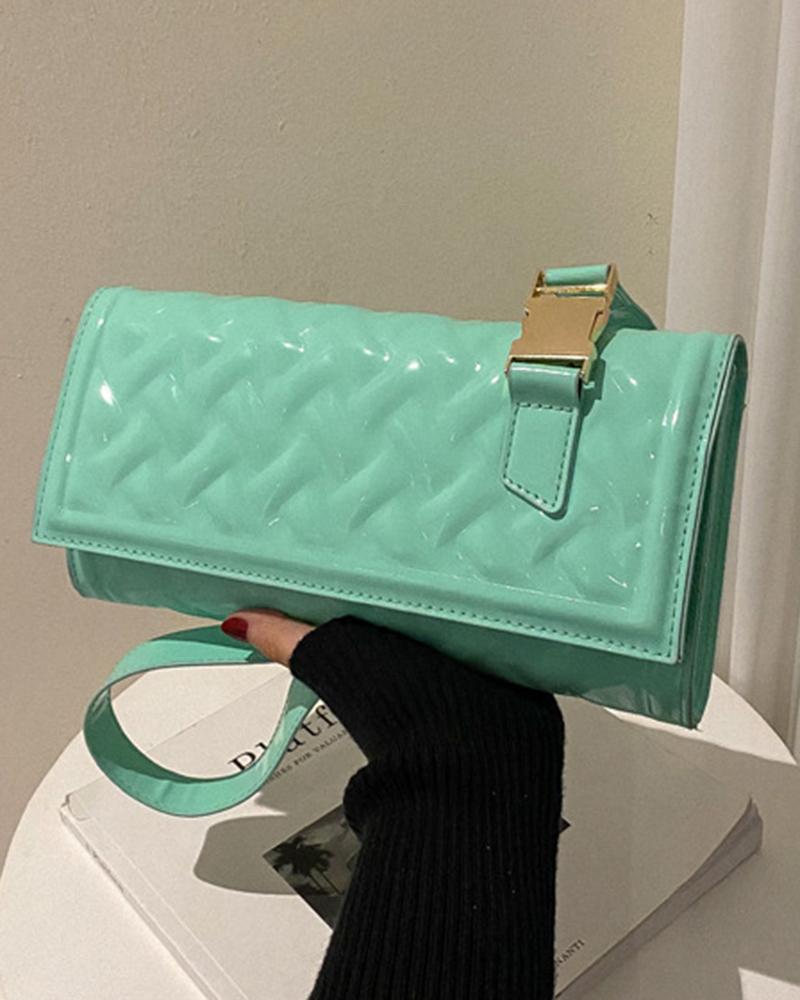 Quilted Flap Rectangular Shoulder Bag, Light green