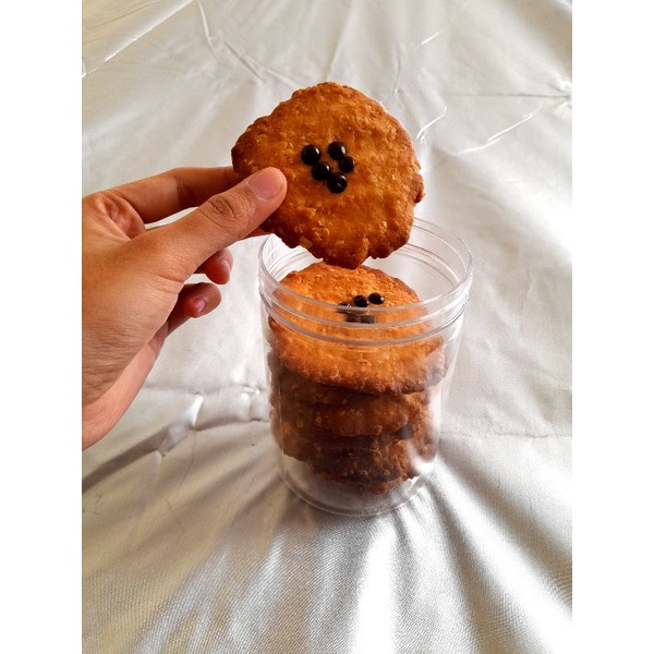 Kata siapa sih oatmeal hanya untuk orang tua/lansia? Eitss tentu tidak kawan. Kita mengolah oatmeal menjadi cookies kekinian, dengan chocochip diatasnya dan dengan oatmeal yang melimpah. Hanya 35.000/250gr. Dengan mengonsumsi cookies ini kalian sudah melakukan langkah awal untuk memulai hidup yang sehat