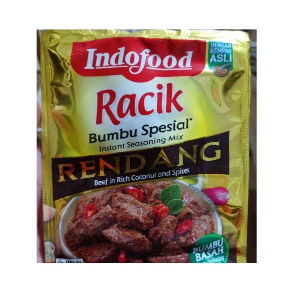Bumbu Racik Rendang Indofood adalah bumbu instan yang dirancang untuk memudahkan pembuatan rendang dengan rasa autentik. Bumbu ini terdiri dari campuran bumbu dan rempah-rempah, santan, bawang merah, bawang putih, dan penguat rasa. Bumbu ini juga mengandung sedikit sulfit, dan bisa dikreasikan dengan bahan pelengkap sesuai selera.