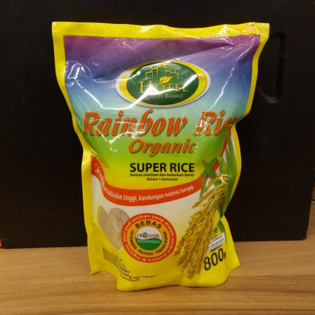 Beras Rainbow Rice Organik Hotel [800 g] adalah beras organik Indonesia super yang mengandung semua manfaat dan kebaikan beras dalam satu kemasan dengan campuran antara beras organik hitam, merah, dan coklat pandan wangi dengan serat tinggi, antioksidan tinggi, kandungan nutrisi tinggi sehingga aman dikonsumsi dan baik untuk kesehatan keluarga Anda. Diproses secara modern dan higienis. Bebas zat pewarna, pestisida, dan pewangi buatan.