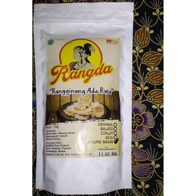 RANGDA Merupakan makanan ringan tradisional yang terbuat dari Beras Ketan, yang diolah secara alami tanpa bahan pengawet dengan rasa Jagung Bakar yang gurih dan renyah.