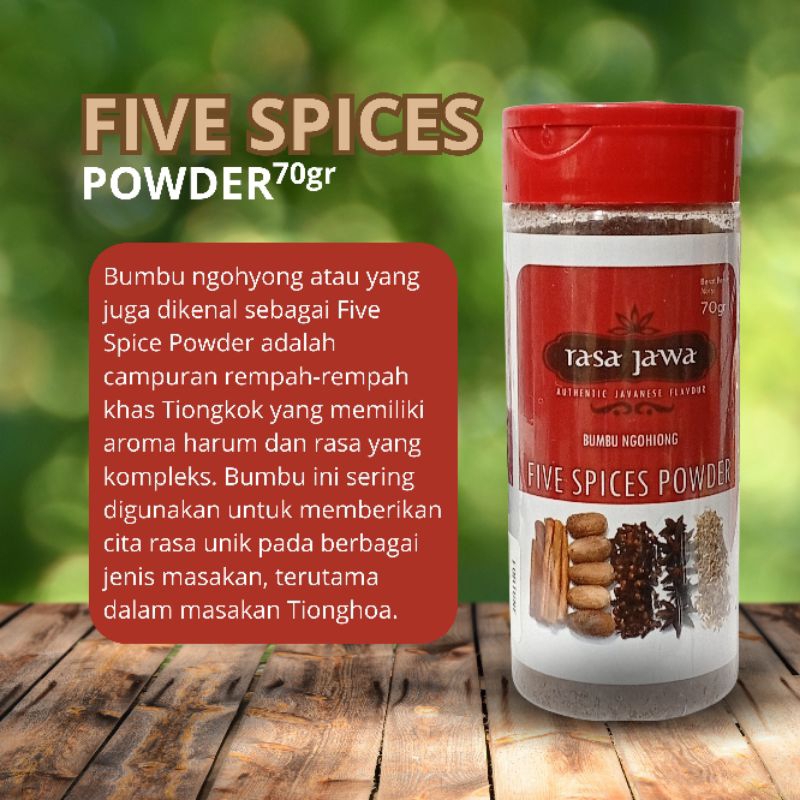 Rasa Jawa mempersembahkan produk terbarunya, yaitu Five Spices Powder. Produk ini merupakan bumbu dapur yang dapat memberikan rasa yang kaya dan aroma yang khas pada masakan Anda. Dengan menggunakan Five Spices Powder, Anda dapat membuat hidangan yang lezat dan menggugah selera.