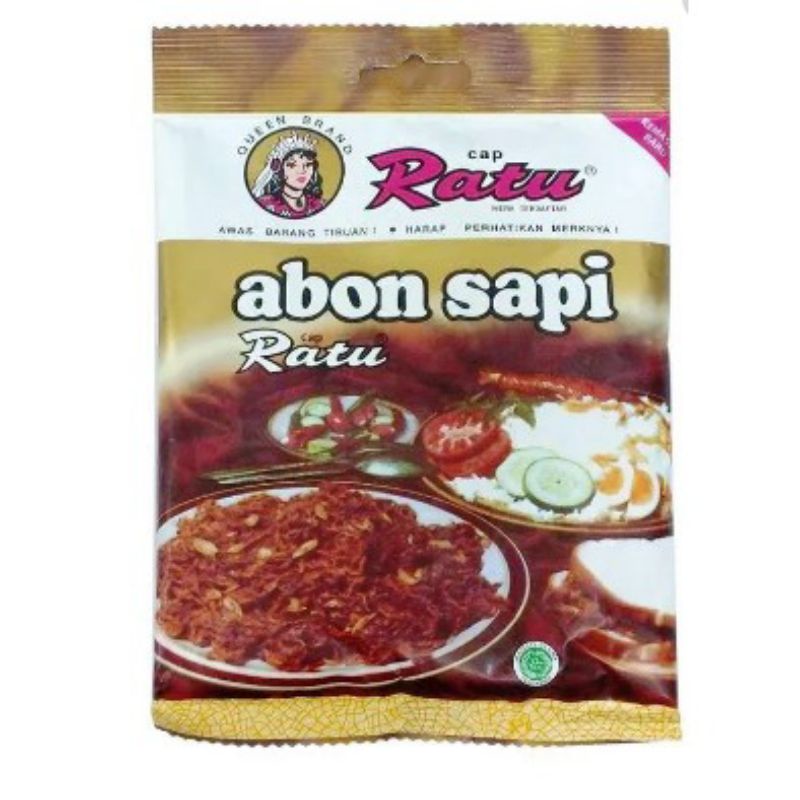 Abon Sapi cap RATU terbuat dari daging sapi dan bumbu yang terpilih.