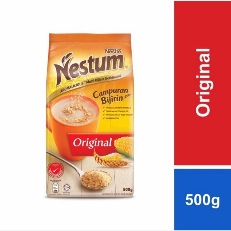 Nestle Nestum Original diproses secara menyeluruh dengan keahlian, mengemas kebaikan multi-butir di setiap serpihan Nestum! Setiap aromatik multi-grain dipanggang dengan cinta, membuat setiap cangkir Nestle Nestum bahkan lebih lezat dan juga diisi dengan gandum, jagung dan beras yang bergizi. Hadir dengan tambahan gandum, cara yang bagus untuk menurunkan kadar kolesterol!