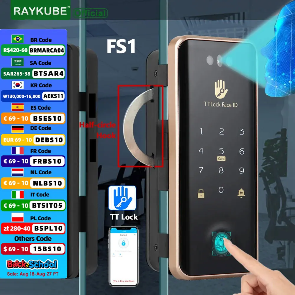 RAYKUBE FS1 TT Lock 3D Распознавание лиц Смарт-замок с полукругловым крючком Биометрическая электронная разблокировка отпечатков пальцев Стеклянный дверной замок