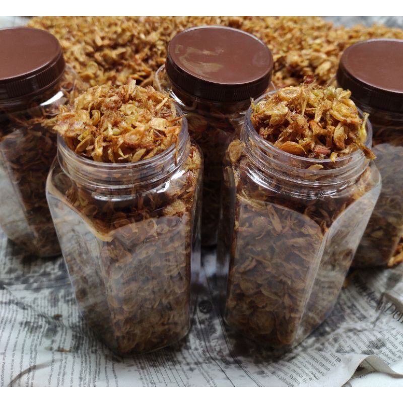 BAWANG GORENG ukuran 700ml berat 180 - 190 gr. . MASA PENYIMPANAN TAHAN SAMPAI 8 BULAN.. digoreng dengan minyak baru dan bagus bukan minyak curah sehingga tahan lama...