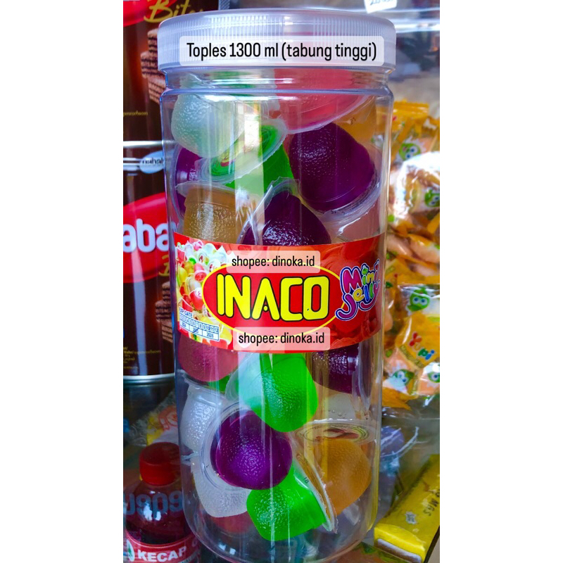 Jelly Inaco dikemas dalam Toples 1300 ml.