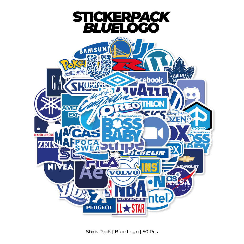 [READY] STICKER PACK | RANDOM LOGO BLUE | 50 PCS | KISSCUT | WATERPROFF | STIXIS.MARKET