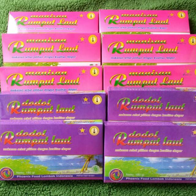 Dodol dan Manisan rumput laut khas Lombok, terbuat dari bahan-bahan alami dan rumput laut pilihan sehingga kaya akan serat dan manfaadaat bagi kesehatan tubuh. Cocok untuk camilan/jajanan baik anak2, remaja & org dewasa krn mengandung berbagai macam vitamin yg baik utk tubuh. Cocok juga buat suguhan di Hari Raya, oleh-oleh dan kado buat orang-orang tercinta.