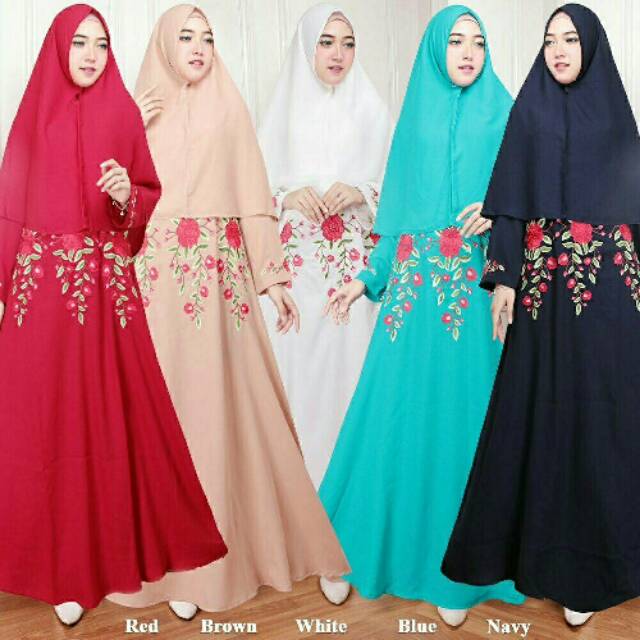 06 REBECA Gamis bahan wollycrep ld 100 pb135 + bergo + busui + maxi kombinasi bordir Fit To XL