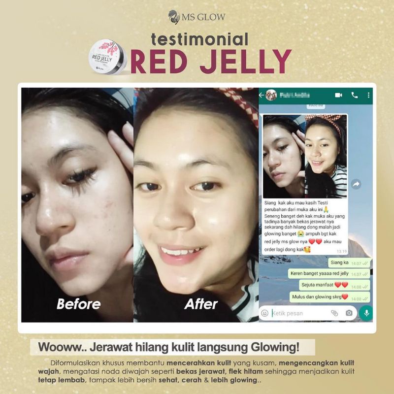 Nah Kandungan utama yg terdapat pada Red Jelly seperti Ekstrak Sakura, Seboclear, Liftonin Xpress, Glutathione, Collagen, mampu mengatasi masalah jerawat & bekas jerawat, mengencangkan, melembabkan, menghaluskan, sebagai anti penuaan, mengurangi flek pd wajah, sebagai sleeping mask & memaksimalkan kerja cream malam,