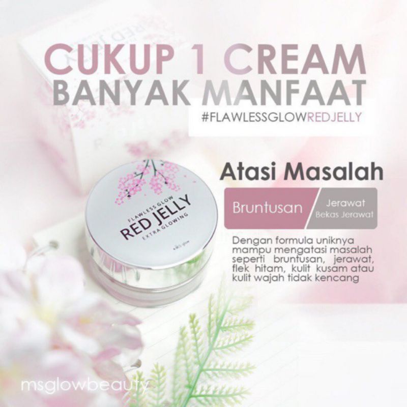 Red Jelly juga bermanfaat mengencangkan kulit, mengempiskan jerawat, mengurangi kerutan dan flek di wajah, serta membuat kulit wajah lebih glowing .