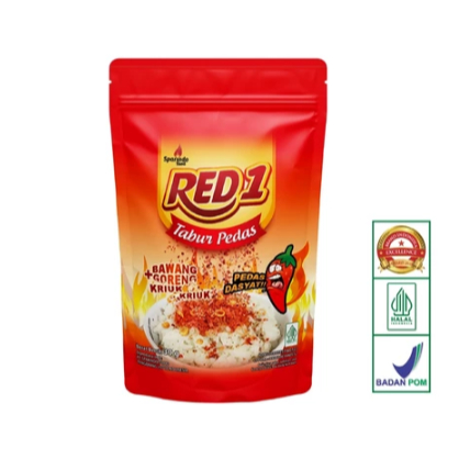 RED1 Tabur Pedas Bawang Goreng kini hadir dengan kemasan resealable pouch 30 gram. Bawang goreng asli kriuk kriuk! Taburkan di setiap makanan, makan jadi lebih pedes pedes sedep!
