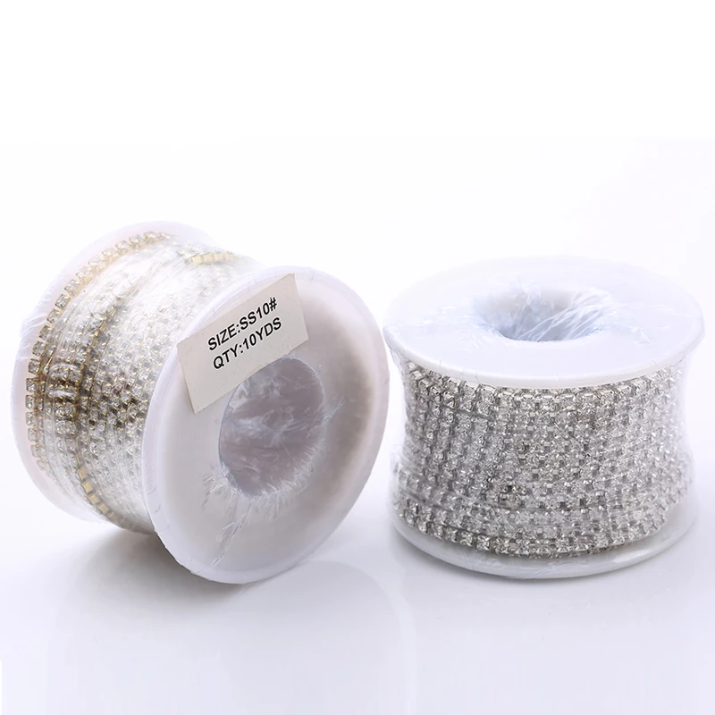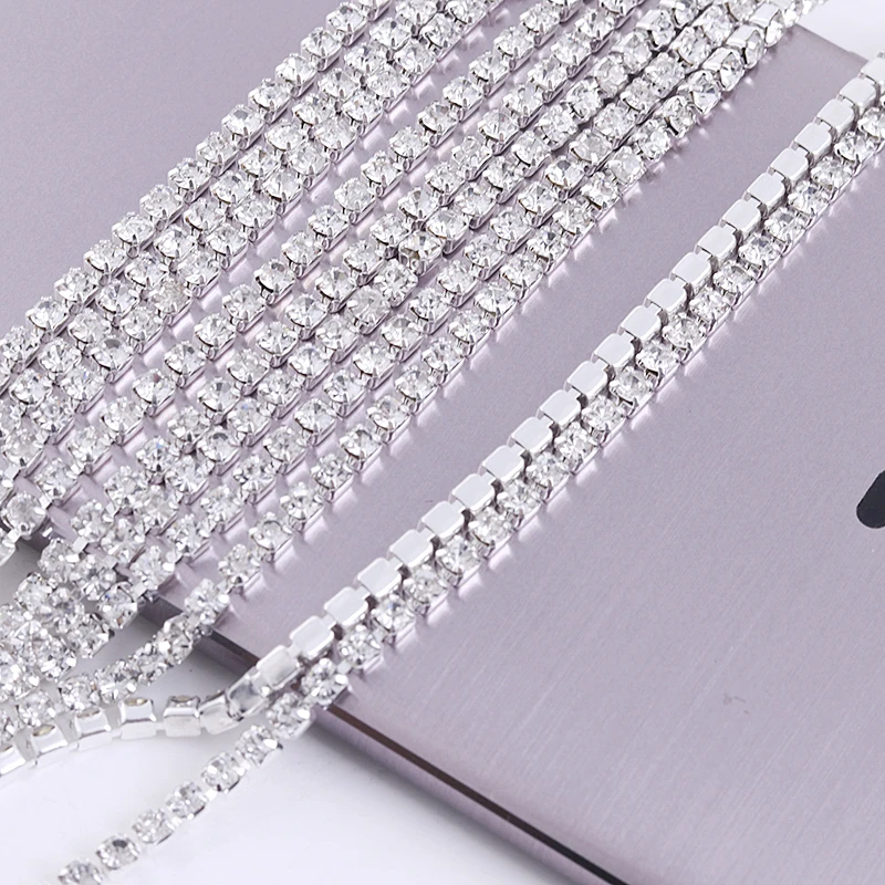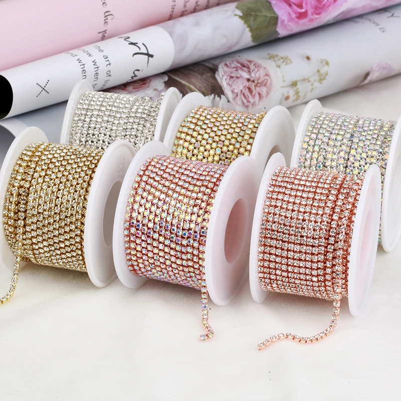 RESEN SS6-SS18(2 мм-4,5 мм), серебристая/Золотистая основа, прозрачная Хрустальная звеньевая цепочка, для одежды, для шитья, стеклянная звеньевая цепочка, хрусталь