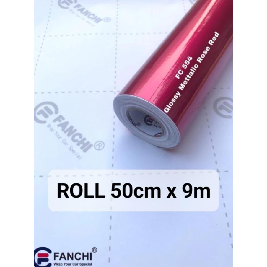 RESTOCK! ROL STICKER FANCHI FC554 GLOSSY METALLIC CANDY ROSE RED 50CM X 9M ROLL