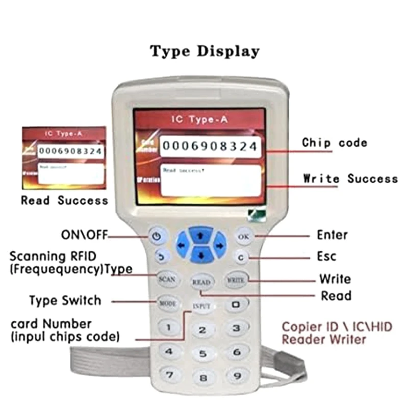 RFID NFC Copier Reader Writer 10 Frequency Programmer For ID IC Card/Keyfob And 13.56Mhz UID Key Access Control System Durable