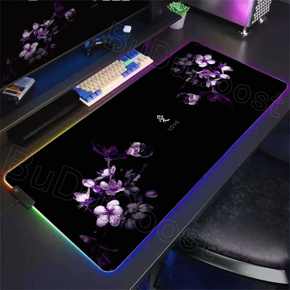 RGB Beautiful Blossom Mouse Pad Large Desk Accessories Desk Pad Rubber Base Lock Edge Mousepad Non-Slip Flower Mouse Pads Office